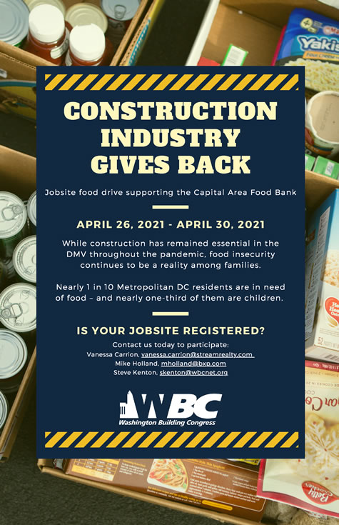 WBC Foundation is organizing a jobsite food drive supporting the Capital Area Food Bank on April 26-30.