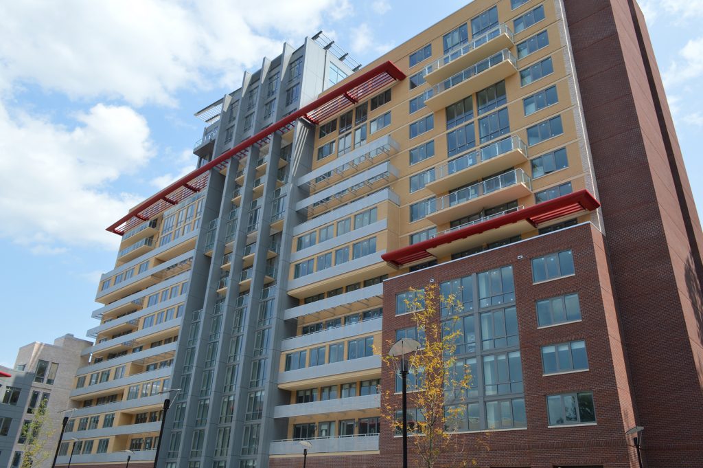 DelRay Tower Apartments, a 332-unit complex with 14,000 square feet of retail space, was developed by UDR, Inc. and designed by Lessard Design, Inc. Built by Donohoe Construction, the multifamily building incorporated eco-friendly solutions aimed to enhance the quality of life for the residents and the community. Electric car charging stations, tenant bike storage, energy efficient appliances and water conserving fixtures are a few of the “green” initiatives that were included in the project.