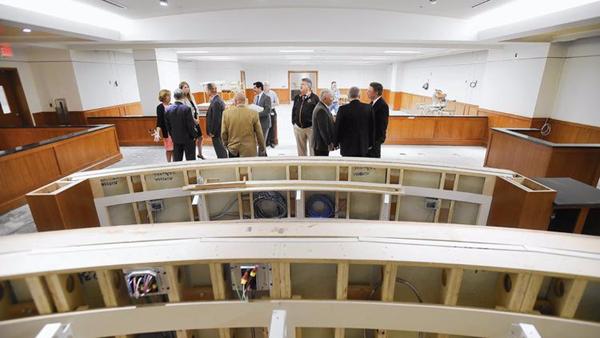 Carroll County officials take a tour of the new courtroom under construction at the Carroll County Circuit Court building in Westminster Thursday, Oct. 29, 2015. (DYLAN SLAGLE/STAFF PHOTO / Baltimore Sun Media Group)