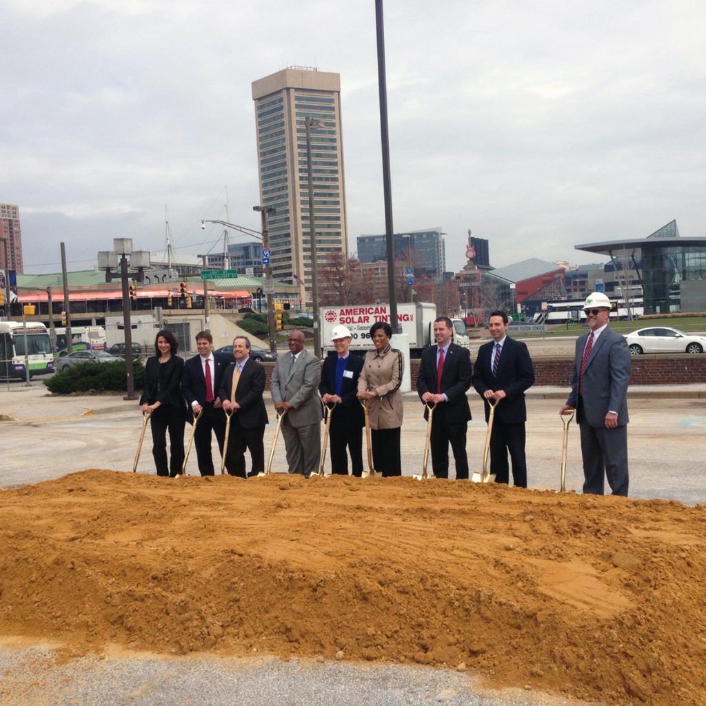 On March 15th, Questar, Mayor of Baltimore Stephanie Rawlings-Blake, local business leaders, and Lendlease gathered at the project site to host a groundbreaking ceremony, to mark the beginning of construction. Upon project completion the project will be among the tallest in Baltimore.