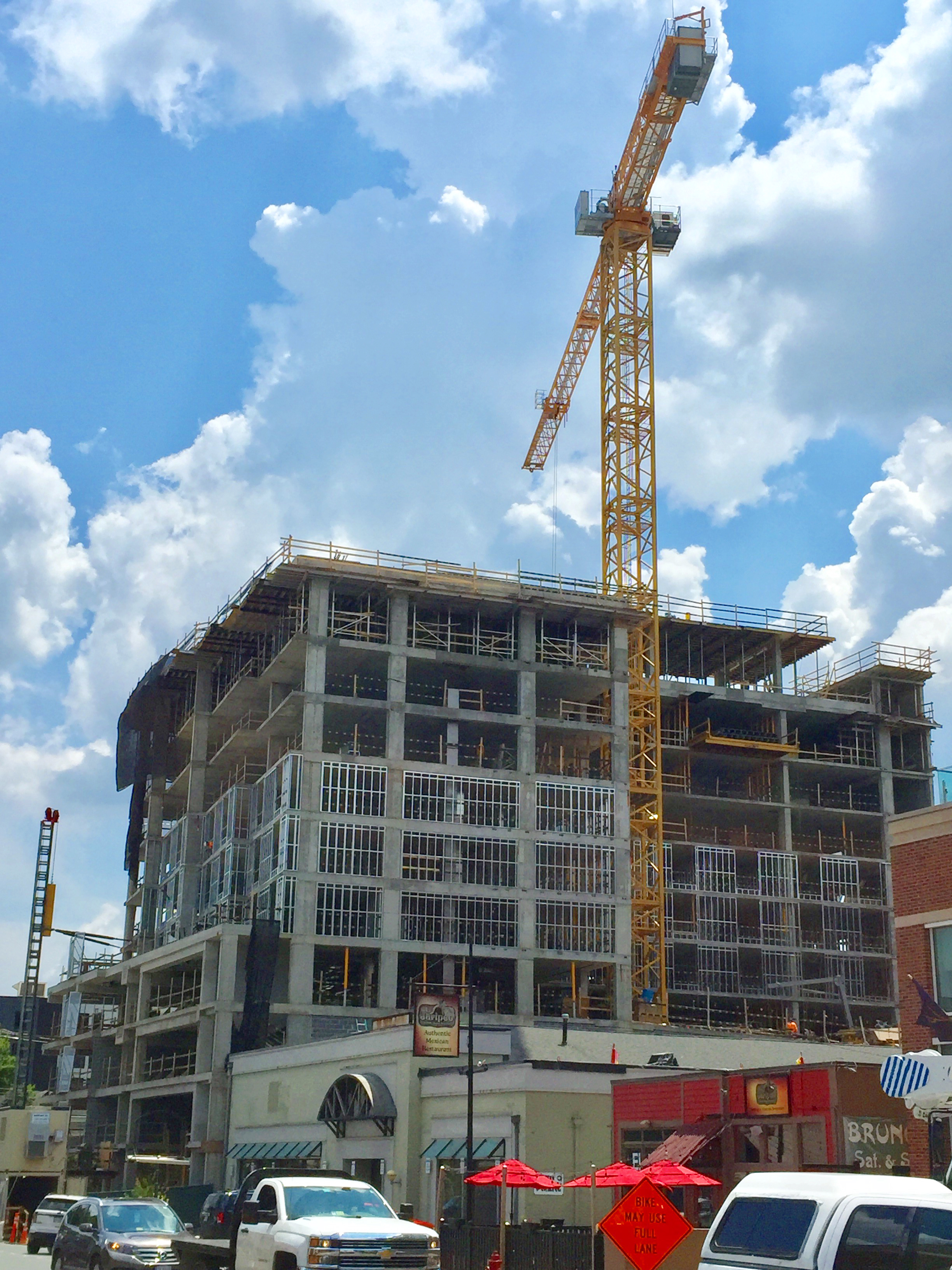 Donohoe Construction Company hosted a “Topping Out” celebration for The Draftsman, a 10-story hotel project located on 1106 West Main Street in Charlottesville, Virginia, earlier today. This event marks the building reaching its highest constructed point.