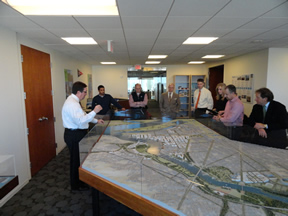 The Regional Development Committee, as part of its ongoing efforts to track regional development, recently visited the Washington offices of the Capital Riverfront Business Improvement District (BID).  The BID advocates for the development and up keep of the area roughly bounded by 395 on the North, South Capitol Street and Fort McNair to the west and the Anacostia River.  More specifically it is home to Nationals Park, the Navy Yard and the headquarters of Federal Department of Transportation.
