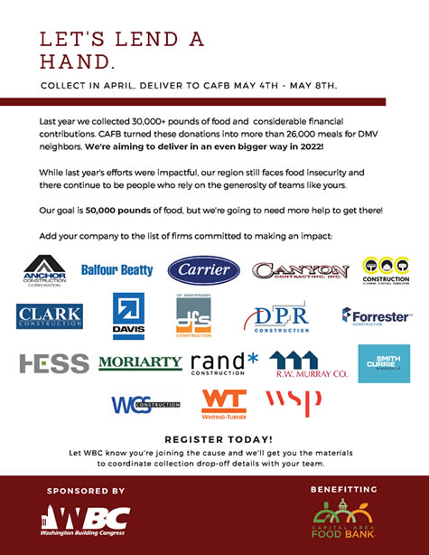 WBC Foundation is organizing a jobsite food drive supporting the Capital Area Food Bank this month.