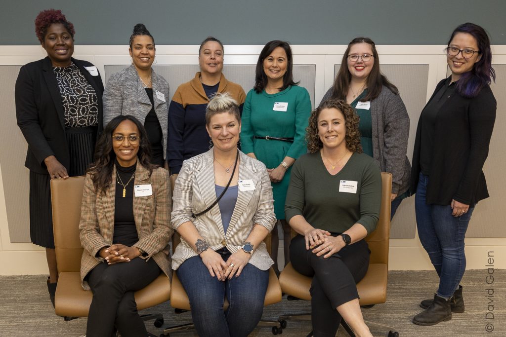 Seated (left to right): Megan Andargie, Katie Kimble and Gabrielle Bishop